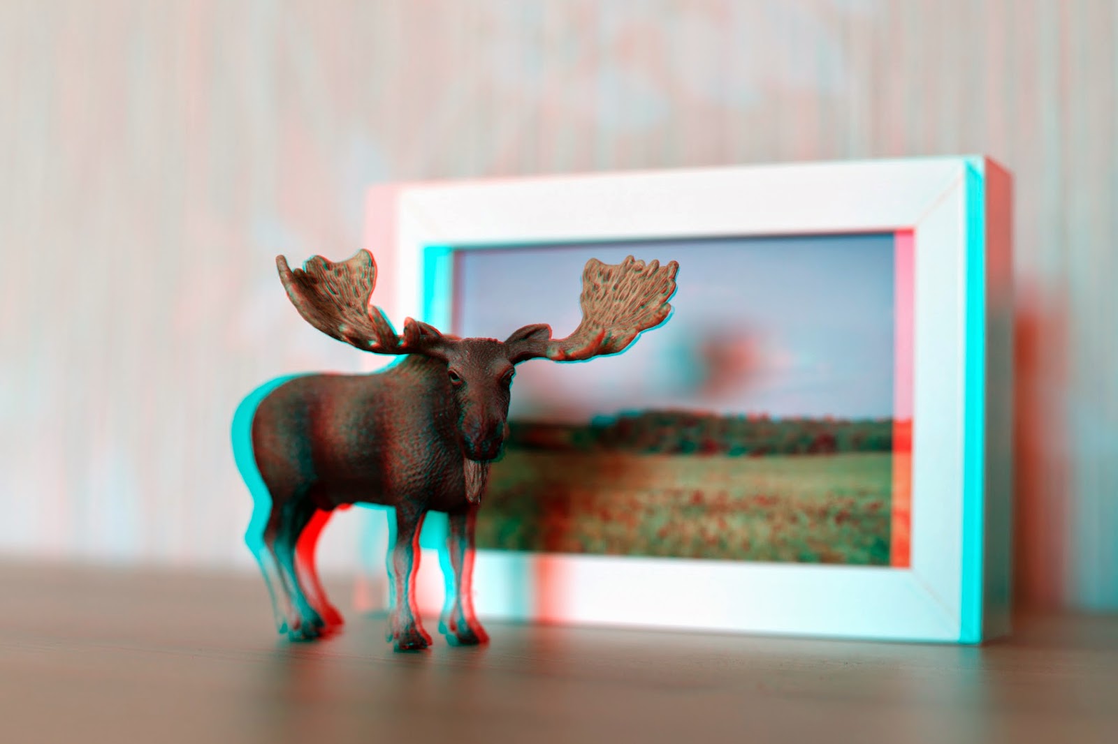 Si bien esta entrada no es más que una nueva reflexión para refrescar nuestro interés por las manifestaciones artísticas que recurren a los sitemas 3D, lo cierto es que ha sido motivada, fundamentalmente, por la fotografía estereoscópica de Ana Campillo que encabeza este artículo. La imagen anaglifa de una reprocucción de un alce por la firma Schleich ante una fotografía enmarcada de un paisaje natural, dos artificios compartiendo un espacio plano artificialmente tridimensional. Me parece una completa y contundente metáfora de nuestra ensoñación sensorial del mundo natural, ese que se nos escapa cada vez más y que queremos retener con nuestras recreaciones plásticas, una idea que sobrevuela mi propia serie de escanogramas y fotografías esteroscópicas "despedida", de la que podéis ver unas pocas muestras al final del post.